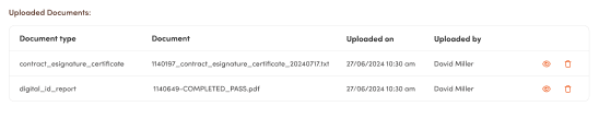 - Once successfully uploaded, the document will appear under the Uploaded Documents heading. Click the Upload button to add additional documents.
